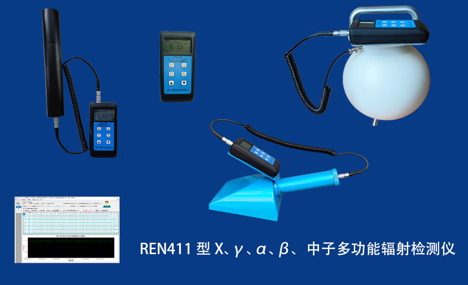REN411 多功能射線劑量儀 REN411型多功能輻射檢測儀是以內(nèi)置高靈敏度蓋格計(jì)數(shù)管為探測器,外接不同類型的探頭來實(shí)現(xiàn)對低劑量χ、γ射線,高劑量χ、γ射線,α、β、中子射線的檢測。作為多功能輻射巡測儀,能顯示工作場所的輻射值,自動連續(xù)測量和記錄280萬條輻射劑量率數(shù)據(jù),更換電池時(shí),日歷、時(shí)間及檢測數(shù)據(jù)能永久保存。工作人員可以任意設(shè)定報(bào)警值,超閾值后自動發(fā)出聲音、震動和光報(bào)警。多功能輻射檢測儀適用于核設(shè)施、核技術(shù)應(yīng)用單位、廢舊鋼鐵、防化部隊(duì)、 加速器、同位素應(yīng)用、工業(yè)X、γ無損探傷、放射醫(yī)療、鈷源治療、γ輻照、放射性實(shí)驗(yàn)室的輻射場調(diào)查及事故應(yīng)急輻